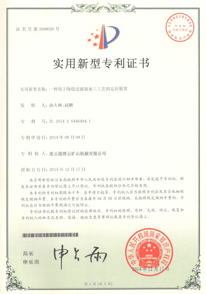 一種用于陶瓷過濾機(jī)加工工藝的定位位置
